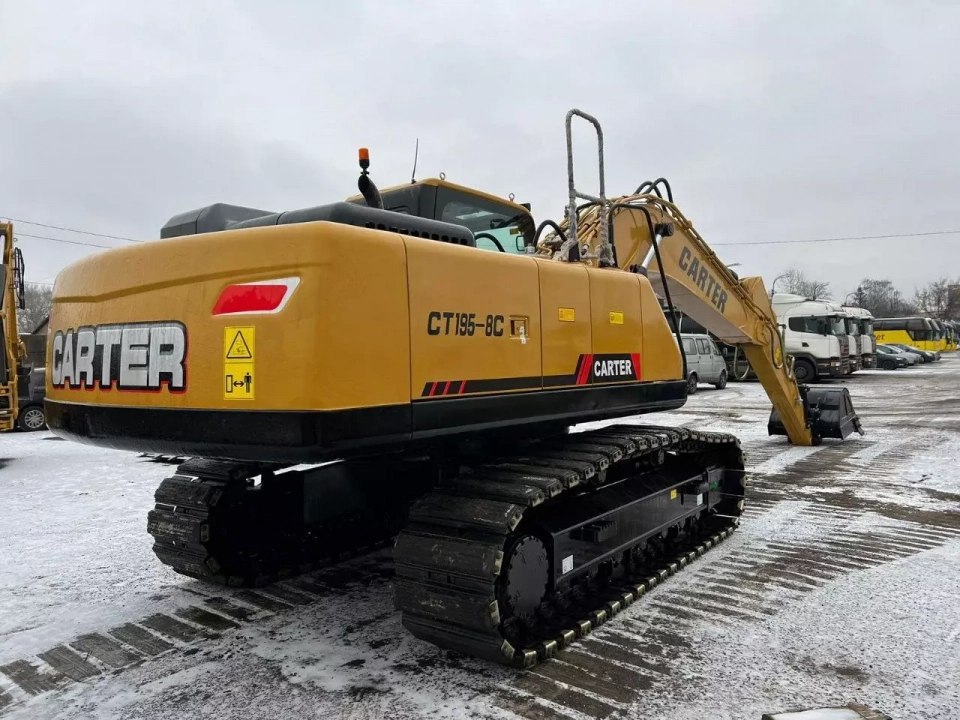 Конструкция экскаватора CARTER CT195-8С была усовершенствованная. Модель обладает укрепленными верхней и нижней рамами, обеспечивающими лучшую устойчивость и позволяющую более равномерно распределять нагрузку. Мощное гусеничное шасси позволяет уверенно передвигаться в непростых дорожных условиях.