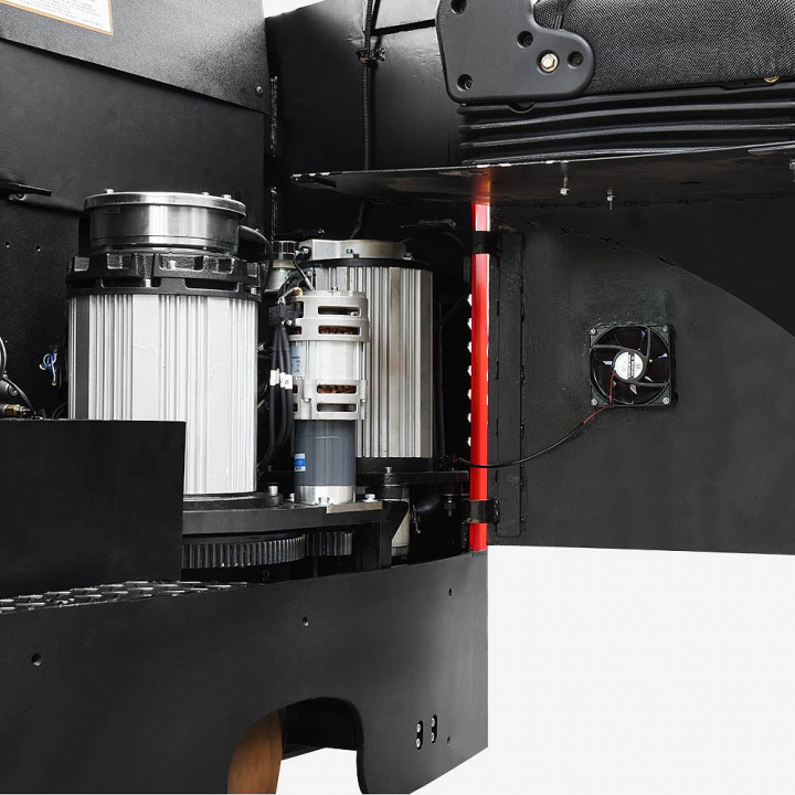 Система привода включает в себя коробку передач ZF®, импортированную из Германии в оригинальной упаковке, импортный приводной двигатель Schabmuller® переменного тока и электродвигатель рулевого управления Schabmuller® с отличной производительностью, а также систему привода, двигатель переменного тока, систему EPS (электроусилитель рулевого управления) и электромагнитную тормозную систему той же конфигурации, что и у остальных лидеров рынка.