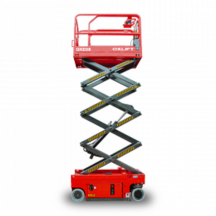Компактный самоходный подъемник ножничного типа QXE 08230E OXLIFT 6000 мм 230 кг DC-двигателем хода (E), подходит для применения как внутри, так и снаружи помещений. Подходит для эксплуатации на складе, в мастерских, на строительных и ремонтных объектах. Применяется для подъема на высоту до 5,8 метров и перевозки грузов весом до 230 кг.